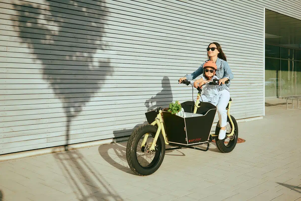 Auf den ersten Blick sieht das neue Ruff Cycles Cargo Buddy wie ein klassisches E-Cargo aus. Es bietet vor dem Lenker eine große Ladefläche. Die Transportbox kann laut Hersteller bis zu 80 kg Zuladung vertragen, sodass nicht nur Kids, sondern auch allerhand Einkäufe und Co transportiert werden können. Kleine Mitfahrer können aber nicht nur vorne, sondern auch auf dem verlängerten Sattel auf dem Oberrohr Platz nehmen. Zudem sind mit dem modularen Front-Rack-System verschiedene Aufbauten wie ein Dach und Co möglich, um für einen vielfältigen Einsatz zu sorgen.
