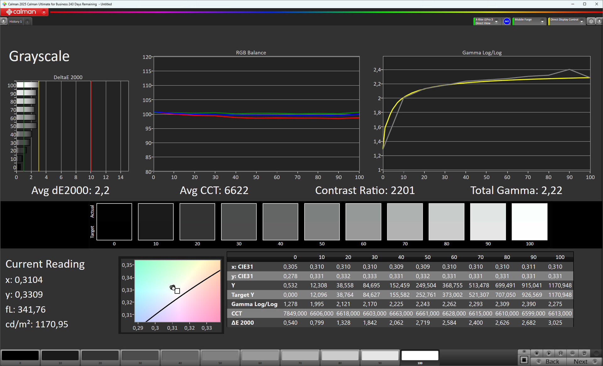 ΔE Greyscale Calman: 2.2 | ∀{0.09-98 Ø5}
