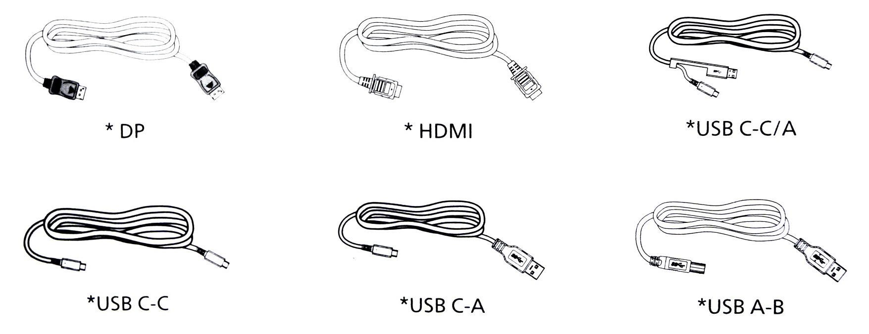 | Zubehör | HDMI-Kabel, DisplayPort-Kabel, USB-Upstream-Kabel, USB-C-zu-C-Kabel, Netzkabel |