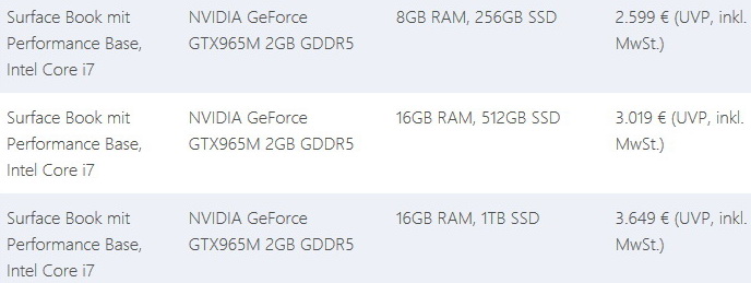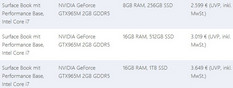 Microsoft legt das Surface Book mit Performance Base nun in drei Varianten auf, die sich hinsichtlich ihrer Speichergrößen unterscheiden. Die anschließende Tabelle in der Bilderstrecke unten zeigt einen Überblick zu den unterschiedlichen Modellvarianten mit den zugehörigen Preisen.