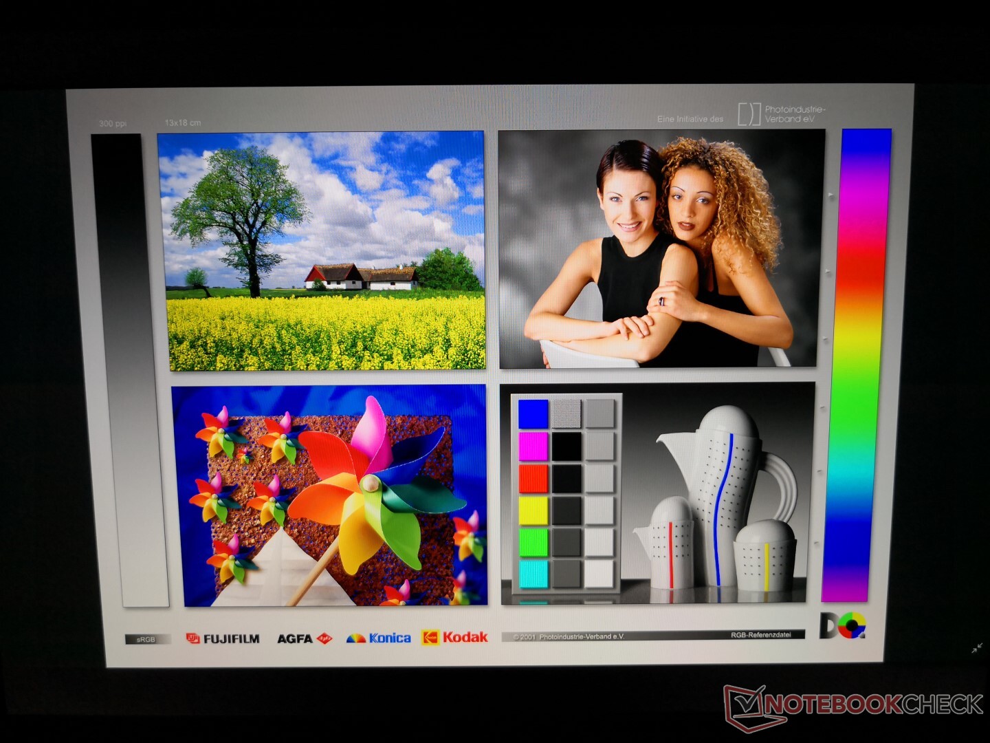 Der Farbraum deckt den sRGB-Standard vollständig ab und erreicht ca. 63 Prozent des AdobeRGB-Standards, was in etwa der Abdeckung des Dell XPS 15 7590 FHD sowie des letztjährigen Surface Laptop 2 entspricht. Manche Laptops mit 4K-UHD-OLED- oder Sharp-IGZO-Panelen wie das Dell XPS 15 oder das HP Spectre x360 15 bieten noch breitere Farbräume.