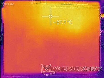 (+) Die Handballen und der Touchpad-Bereich erreichen maximal 35.8 °C und damit die typische Hauttemperatur und fühlen sich daher nicht heiß an.