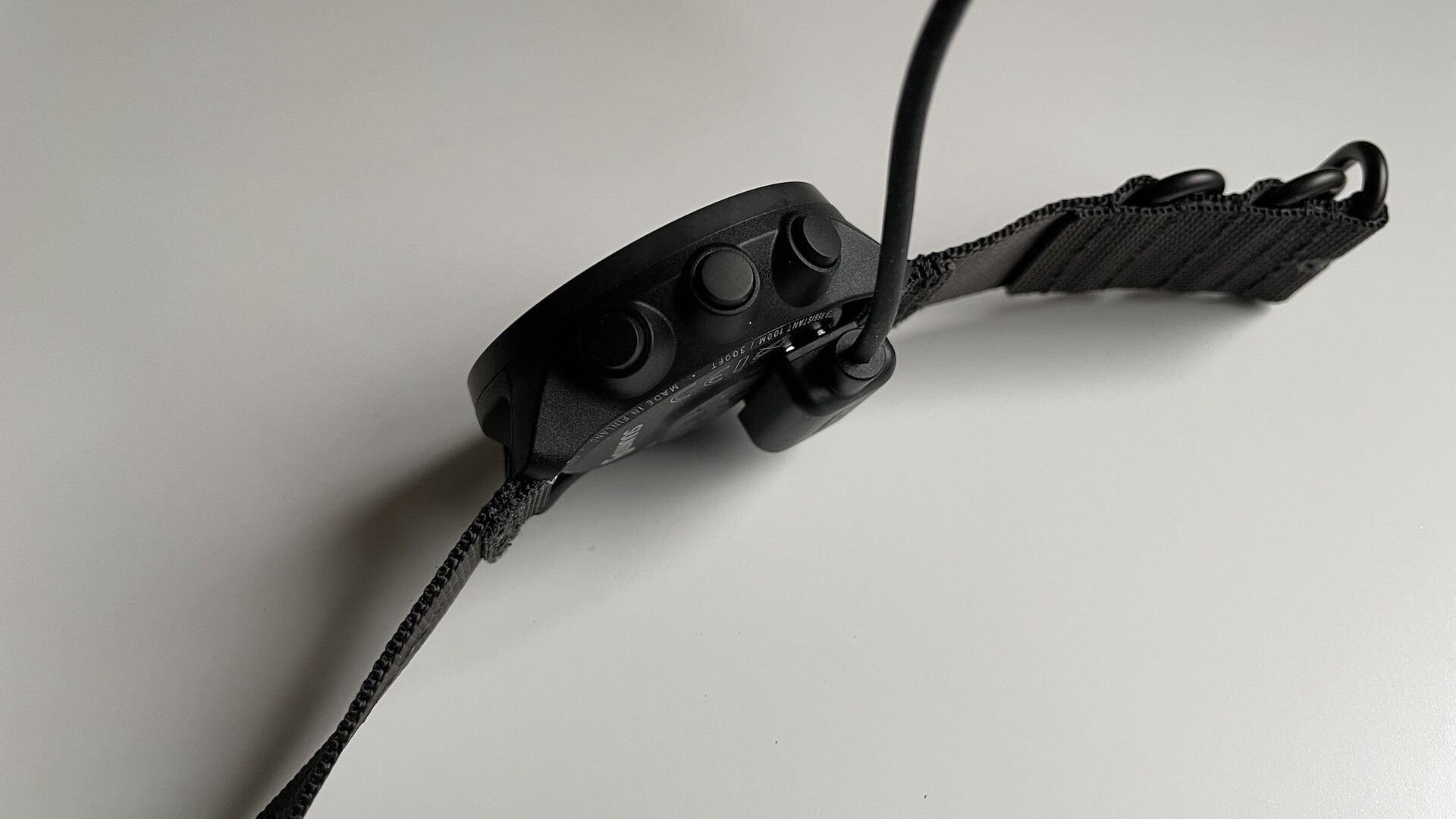 Das Testgerät ist die noch neue Titanium-Version der Suunto 9 Baro. Die Titan-Lünette (Titan Grad 5) verringert das Gewicht um etwa 7 g und erhöht die Widerstandsfähigkeit der hochwertigen Sportuhr, die mehrere Tests nach dem Militärstandard MIL-STD-810G bestandenen hat. Das Silikonband des Basis-Modells ersetzt Suunto durch ein abriebfestes Textilarmband, das in zwei Längen beilegt. Der Austausch, alternativ auch durch ein 24-mm-Standardband, ist dank Schnellverschluss leicht. Ungewöhnlich sind die stabilden und im Band fixierten Bandschlaufen.