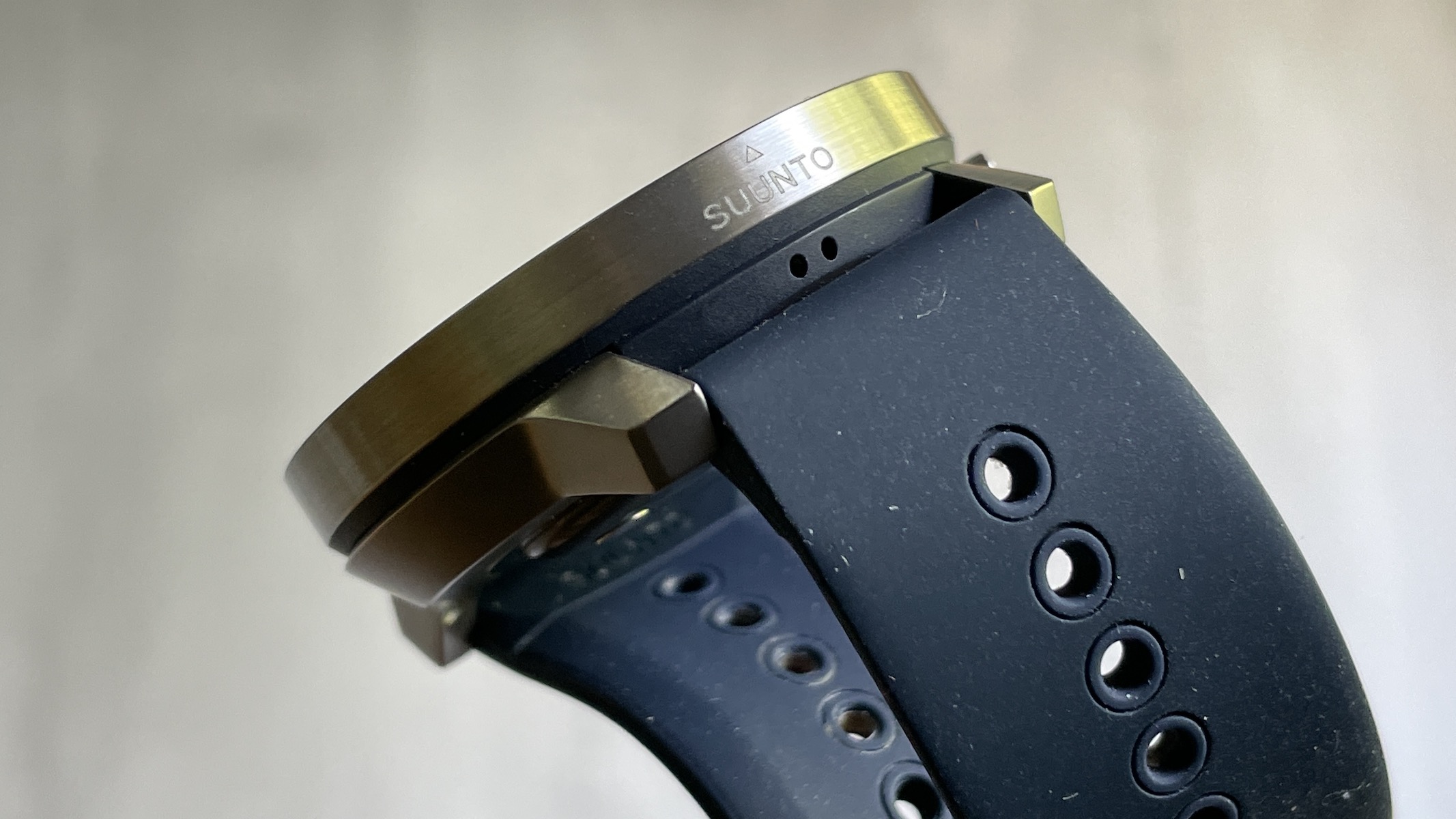 Für das Displayglas verwendet Suunto Saphirkristall. Beim Gehäuse des Testgeräts kombinieren die Finnen glasfaserverstärktes Polyamid mit Titan (Härtegrad 5); bei den zwei günstigeren der insgesamt vier Farbvarianten erhöht Edelstahl anstelle von Titan das Gewicht um 10 g bei identischen Abmessungen. Das 22-mm-Band mit Standardschließe und einem Metallstift zum Fixieren des Bandendes ist bei allen aus Silikon und lässt sich dank Schnellverschluss leicht wechseln.