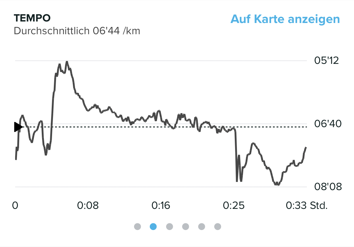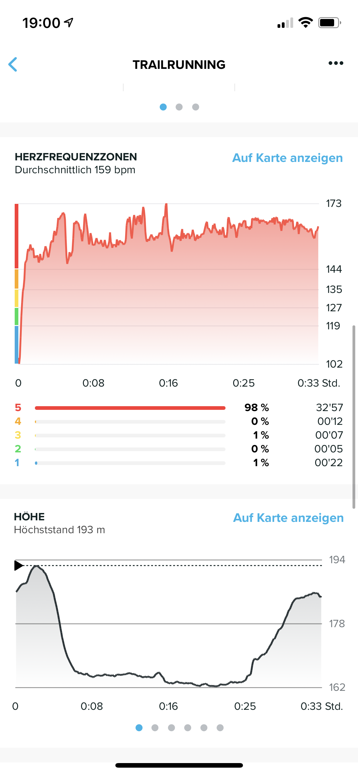 Die Herzfrequenz erfasste parallel dazu ein Brustgurt von Polar. Wenige Minuten nach dem Start fiel die Herzfrequenz leicht ab, weil es in diesem Abschnitt bergab ging. Im gleichen Abschnitt verzeichnet die Suunto 9 Peak einen starken Anstieg der Herzfrequenz, der nicht nachvollziehbar ist. Auch im weiteren Verlauf zeigt das Protokoll mehrere außergewöhnliche Spitzen.