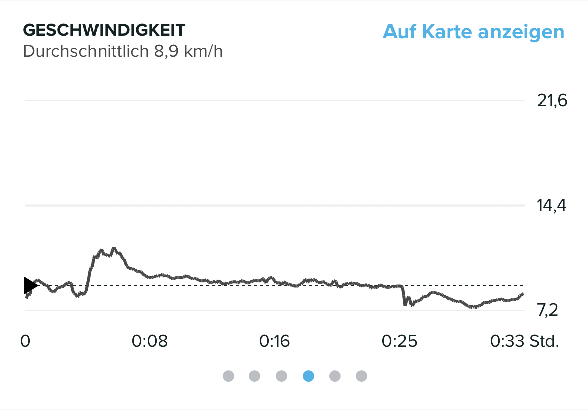 Die Trainingsprotokolle fallen je nach Sportart ausgesprochen detailliert aus. Schon auf der Uhr weist die Multisport-Uhr laut Suunto sportartenübergreifend insgesamt 50 Parameter aus, wie etwa die Schwimmzugeffizienz (SWOLF) beim Schwimmen, wo der Tracker auch unter Wasser die Herzfrequenz misst. Das nachfolgende Protokoll gibt exemplarisch einen Traillauf wieder, bei dem die Climb-Funktion aktiviert war. In der App muss man in drei Abschnitten horizontal weiter blättern, um alle Statistiken, Diagramme und Rundeninformationen einzusehen. Die zusätzlichen Seiten folgen als Ausschnitt nach dem jeweiligen Vollbildschirm.