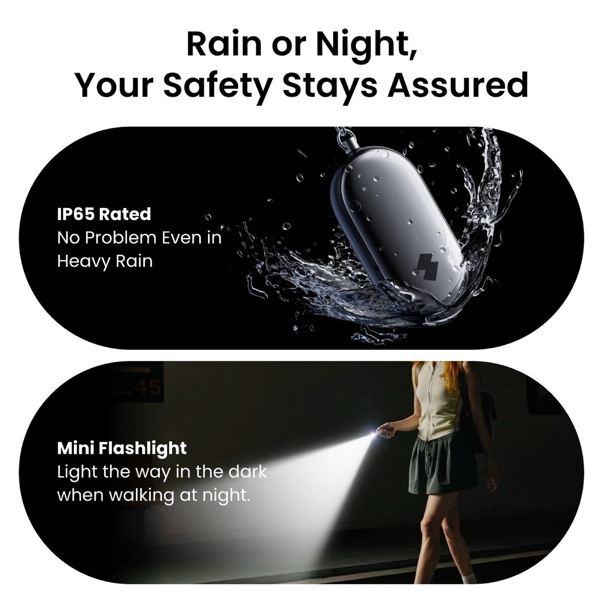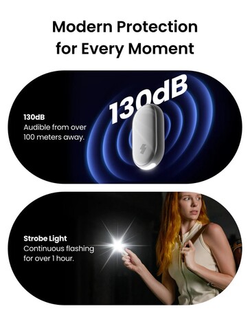 Das soll nicht nur potenzielle Angreifer abschrecken, sondern auch Personen in der Nähe auf das Problem aufmerksam machen. Zeitgleich wird eine Benachrichtigung an zuvor festgelegte Kontakte geschickt, vorausgesetzt, der Safety Alarm befindet sich in Bluetooth-Reichweite zum gekoppelten Smartphone. Wenn es eine Situation erfordert, kann auch ein stiller Alarm ausgelöst werden, der nur die Benachrichtigung verschickt, indem der Button auf dem Gehäuse ein paar Sekunden gedrückt gehalten wird.