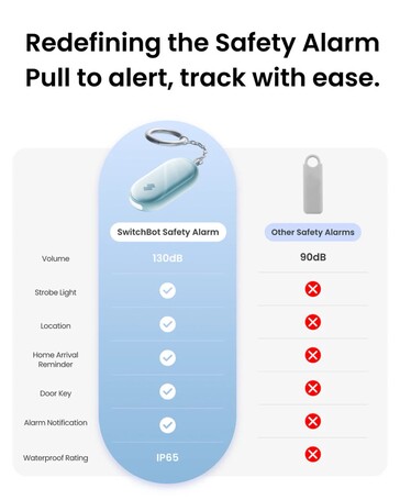 Beim SwitchBot Safety Alarm handelt es sich um ein kleines Gadget für den Schlüsselbund, das Nutzern ein Gefühl von Sicherheit verschaffen soll. Denn wird der Pin, welcher das Gehäuse mit dem Schlüsselbund verbindet, herausgezogen, ertönt eine 130 dB laute Sirene, während eine integrierte LED zu blinken beginnt.