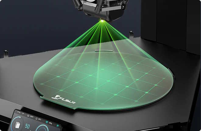 Es steht ein Herstellerangaben zufolge fortschrittliches Auto-Leveling zur Verfügung, wodurch insbesondere die erste Schicht mit hoher Präzision angefertigt werden soll. Angegeben wird eine maximale Geschwindigkeit von 1.000 mm/s, die Genauigkeit beziehungsweise die Abweichung beziffert Flsun auf 0,1 Millimetern, es lassen sich zwischen 0,1 und 0,35 Millimeter hohe Schichten drucken. Die Heizplatte kann auf bis zu 100 °C beheizt werden, die Druckdüse auf 300 °C. Ein Filament-Sensor soll eine unzureichende Filament-Zufuhr erkennen können, eine Vibrationskompensation wird beworben. WFi bringt das System mit, Slicing-Software von Drittanbietern soll ebenfalls unterstützt werden.