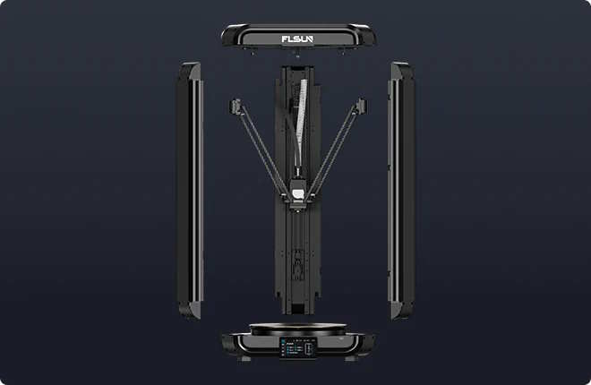 Beim Flsun T1 Max handelt es sich um einen Delta-Drucker, der Druckkopf hängt sozusagen an drei Armen. Dieser Aufbau ist für 3D-Drucker (inzwischen) eher ungewöhnlich. Angegeben wird ein Druckvolumen mit einem Durchmesser von 300 Millimetern und einer Druckhöhe von maximal 297 Millimeter, wodurch sich auch recht große Modell anfertigen lassen sollen.