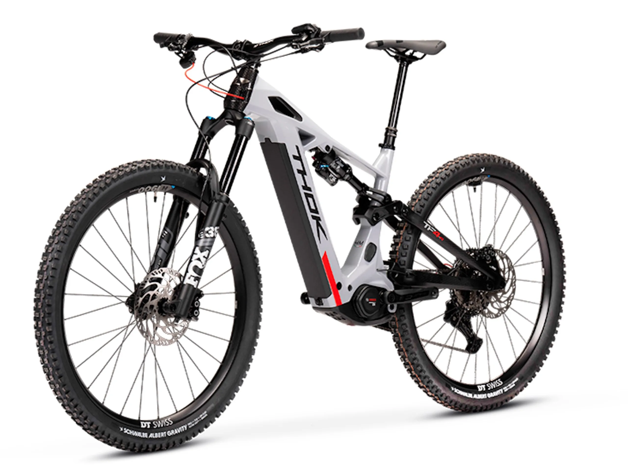 Genutzt wird ein Bosch Performance Line CX-Mittelmotor der fünften Generation (BDU384Y). Der erst kürzlich vorgestellte Motor bringt 2,8 Kilogramm auf die Waage und leistet maximal 85 Nm und 600 Watt (Spitzenleistung), der Fahrer kann mit bis zu 340 Prozent unterstützt werden. Beworben wird ein leiser Betrieb. Thok nutzt ein kompaktes und damit nicht sehr exponiertes Purion 200-Display. Der in den Rahmen integrierte, aber entnehmbare Akku bringt es standardmäßig auf eine Kapazität von 800 Wh, die Kompatibilität ist auch zu Akkus mit einer Kapazität von 600 und 400 Wh kompatibel. Mit einem kleineren Akku reduziert sich das Gewicht: So bringt das mit einem Carbonrahmen ausgestattete TP4 mit dem größten Akku 24,3 Kilogramm auf die Waage, mit dem 400-Wh-Akku reduziert sich das Gewicht auf 22,1 Kilogramm. Ein Range Extender ist noch nutzbar.