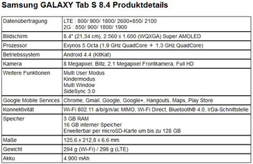 - Samsung Galaxy Tab S 8.4 LTE: 499 Euro