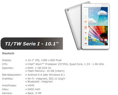 Bei den i.onik TI/TW Serie 1 Ausführungen mit 8 Zoll, 8,9" und 10,1" (1280 x 800 Pixel) rechnet laut den Angaben des Herstellers jeweils ein Intel Atom Z3735G Quadcore-Prozessor mit 1,33 GHz. Die TI/TW Serie I mit 9,7 Zoll besitzt hingegen ein hochauflösendes Display mit einer Auflösung von 2048 x 1536 Bildpunkten. Angetrieben wird das 9,7"-Tablet laut Ionik von einem Intel Atom Z3735D.