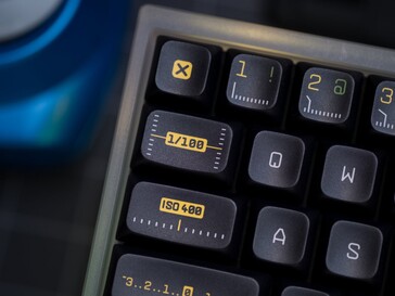Beispielsweise trägt die Enter-Taste je nach Layout entweder die Beschriftung "Aperture Priority" oder "Portrait Mode", Backspace zeigt eine Verschlusszeit, die Umschalttasten werden durch eine Belichtungskorrektur-Skala geziert, die Feststelltaste durch eine ISO-Einstellung. Die Strg-, Alt- und Windows-Tasten zeigen schlichte Modus-Symbole, die Escape-Taste zeigt passenderweise das Symbol zum Auswerfen einer Speicherkarte. Die Ziffernreihe stellt die jeweiligen Ziffern symbolisch anhand einer Tiefenschärfe-Skala dar.