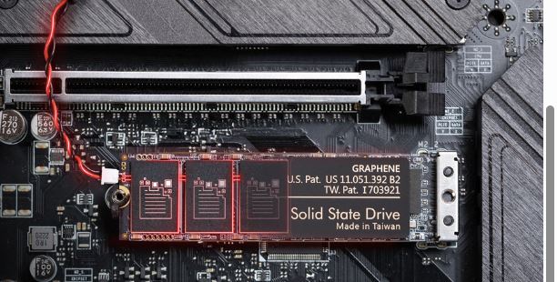 Es handelt sich zumindest abgesehen von entsprechenden Aufdrucken optisch um eine ganz gewöhnliche M.2 2280-SSD, welche auch über vier PCIe 4-Lanes angebunden eine maximale Datenübertragungsrate von 7.000 Mbyte/s lesend und 5.500 Mbyte/s schreibend erreichen soll und mit 256 und 512 Gigabyte und einem und zwei Terabyte angeboten wird, es kommt dreidimensionaler TLC-Speicher zum Einsatz. Zu sehen ist allerdings ein zusätzliches Kabel beziehungsweise eine zusätzliche Buchse für einen Stecker.