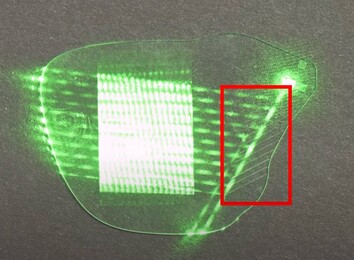 Der Rahmen der Brille lässt sich nicht ohne Schäden öffnen, eine defekte Kamera oder ein fehlerhaftes Display zu tauschen dürfte zumindest ohne Fachkenntnisse und spezielle Werkzeuge nicht möglich sein. Interessant ist das Teardown-Video nicht zuletzt, weil das AR-Display im Detail zu sehen ist. Im rechten Arm der Brille sitzt ein winziger Projektor, der eine Auflösung von 600 x 600 Pixel erreicht.