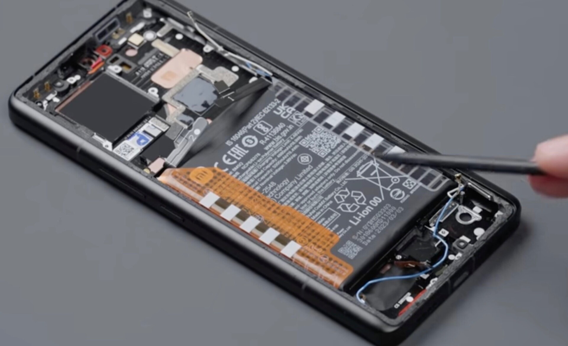 Ein weiterer Nachteil von Xiaomis Design ist, dass sich die Kameras nicht ohne Weiteres einzeln tauschen lassen, wie bei den meisten Konkurrenten. Der Akku verfügt über eine große Klebelasche, die es deutlich einfacher macht, diesen aus dem Gehäuse zu entfernen und zu ersetzen. Unter dem Akku kommt Xiaomis großer Vapor-Chamber-Kühlkörper zum Vorschein, der den Snapdragon 8 Gen 2 auch unter Dauerlast kühl halten soll.