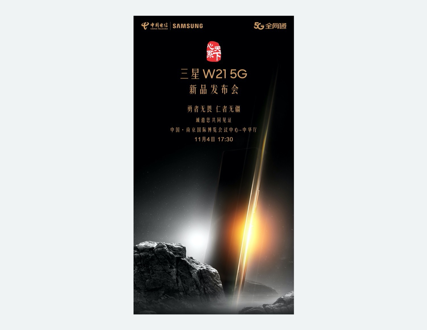 Der unten eingebettete Teaser, der auf dem chinesischen sozialen Netzwerk Weibo geteilt wurde, bestätigt die offizielle Präsentation des Galaxy W21 am 4. November. Die Galaxy W-Serie steht traditionell für luxuriöse und extrem teure Klapp-Handys, die speziell für den chinesischen Markt vorgesehen waren, es war also nur eine Frage der Zeit, bis das Angebot nach dem W20 um ein weiteres Gerät mit einem faltbaren Display erweitert wird.