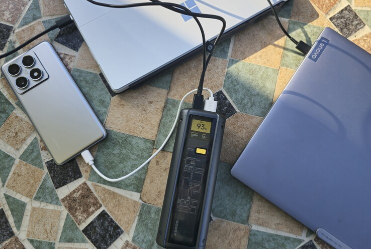 Die drei verbauten Anschlüsse bieten zusammen eine Ausgangsleistung von 212 Watt (65 W + 27 W + 120 W) in der Spitze. Damit steht genügend Leistung zur Verfügung, um zwei Notebooks und ein Smartphone gleichzeitig mit Strom zu versorgen. Im Test funktioniert dies mit einem Thinkpad Z16, Microsoft Surface Pro 8 und Xiaomi 14T Pro ohne Probleme. Überhitzt ist die Powerbank auch unter voller Last in unserem Test nicht. Abseits des Multi-Charge-Szenarios besitzt der Xiaomi-Energiespeicher aber auch sehr beachtliche Kennzahlen. Die beiden leistungsstarken USB-Ports kommen auf maximal 140 Watt (USB-C1 - 28V/5A) respektive 120 Watt (USB-A, 20V/6A). Auch der dritte Anschluss im Verbund leistet immer noch für viele Flagship-Handys, wie einem Galaxy S24 Ultra oder iPhone 16 Pro, mit 45 Watt (USB-C1, 20V/2,25A) genügend Power.