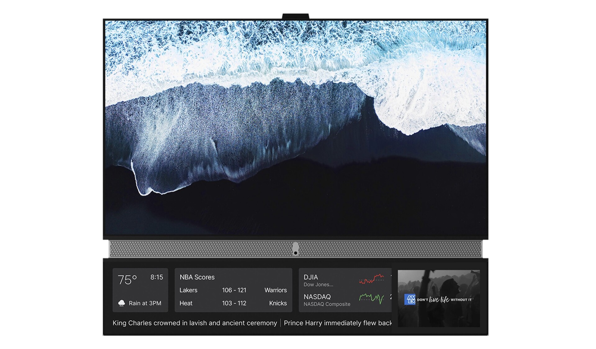Dieses verläuft über die gesamte Breite am unteren Ende des Smart TVs. Der zweite Bildschirm soll für Nutzer einen Mehrwert bieten, indem Widgets dargestellt werden können, die etwa die aktuelle Musikwiedergabe, Aktienkurse, das Wetter oder auch die Ergebnisse von Sportevents anzeigen. Das News-Widget zeigt vor allem gesponserte Nachrichten an. Das Zweitdisplay bleibt selbst dann aktiv, wenn der Fernseher nicht verwendet wird, sodass rund um die Uhr Werbung angezeigt wird.