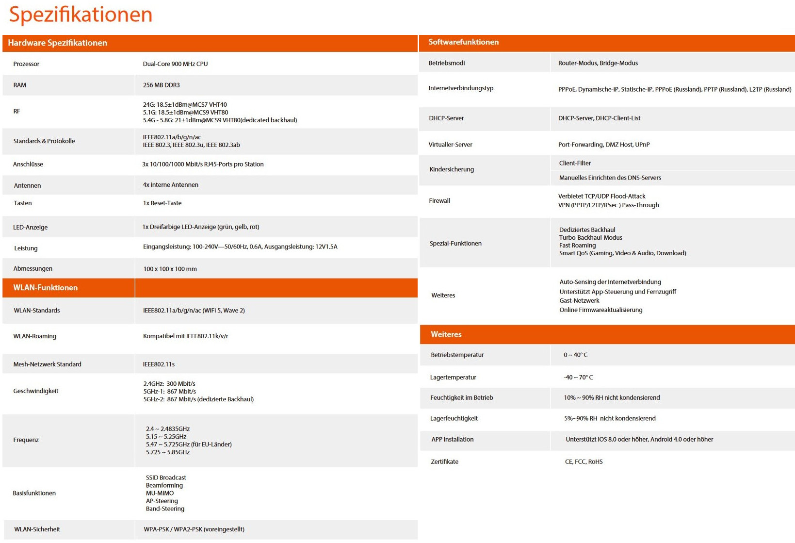 - WLAN-Abdeckung bis zu 500 Quadratmeter