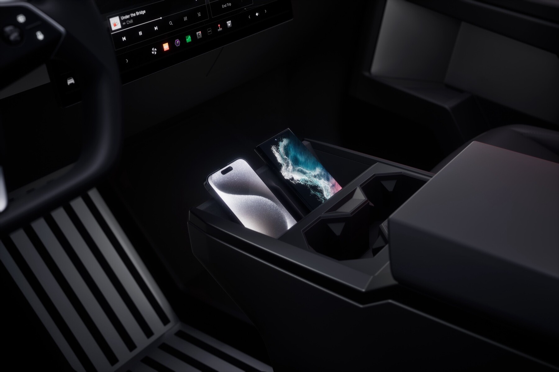 Die Karosserie besteht teils aus Edelstahl, die Fenster sollen besonders robust sein – um dies zu demonstrieren, verwendet Tesla jetzt aber nur noch einen Baseball, nachdem die Demo mit einer Metallkugel dramatisch schief gelaufen ist. Der Cybertruck bietet immerhin eine Reihe von Komfort-Features, inklusive gleich zwei drahtloser Ladegeräte für Smartphones, einem schicken Panorama-Dach, großer Touchscreens sowohl für die Vorder- als auch die Rücksitze und einer 240 Volt Steckdose im Bereich der Ladefläche, über die sogar andere Elektroautos mit bis zu 11,5 kW per Powershare geladen werden können.