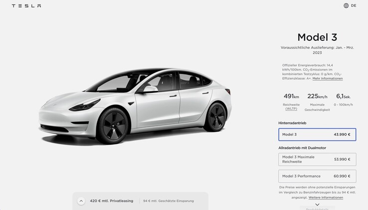 - Tesla Model 3 Maximale Reichweite – 53.990 Euro (–5.500 Euro)