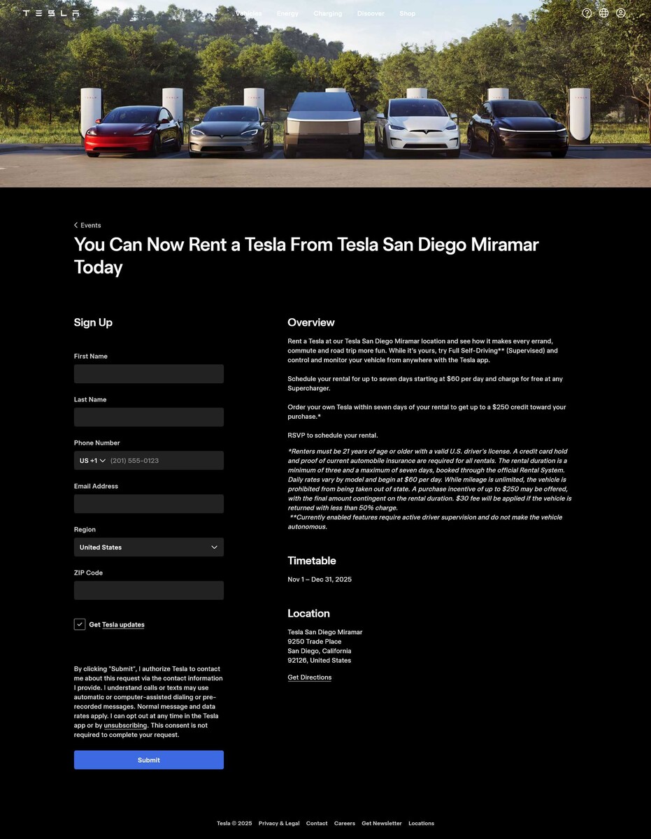 Mit seinem frisch aufgelegten Mietprogramm will Tesla in den USA neue Kunden anlocken und gleichzeitig Lagerbestände abbauen. Der Testlauf startet in ausgewählten Tesla Stores, zum Beispiel in San Diego, und ist zunächst auf den Zeitraum vom 1. November bis 31. Dezember 2025 begrenzt. Es scheint, als wolle Tesla kurz vor Jahresende die Verkaufszahlen nochmal pushen. Ob die Aktion auf andere Märkte ausgeweitet wird, ist bisher unklar.