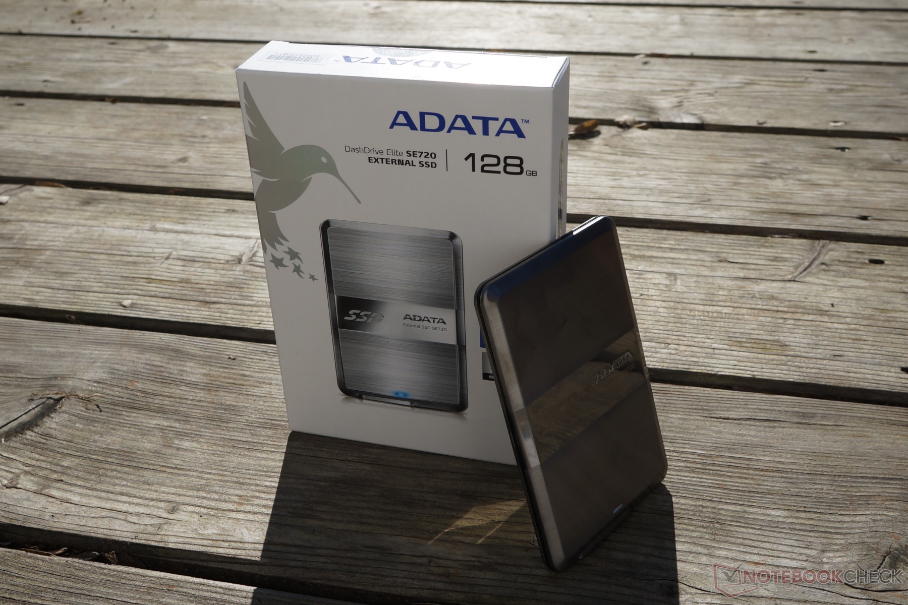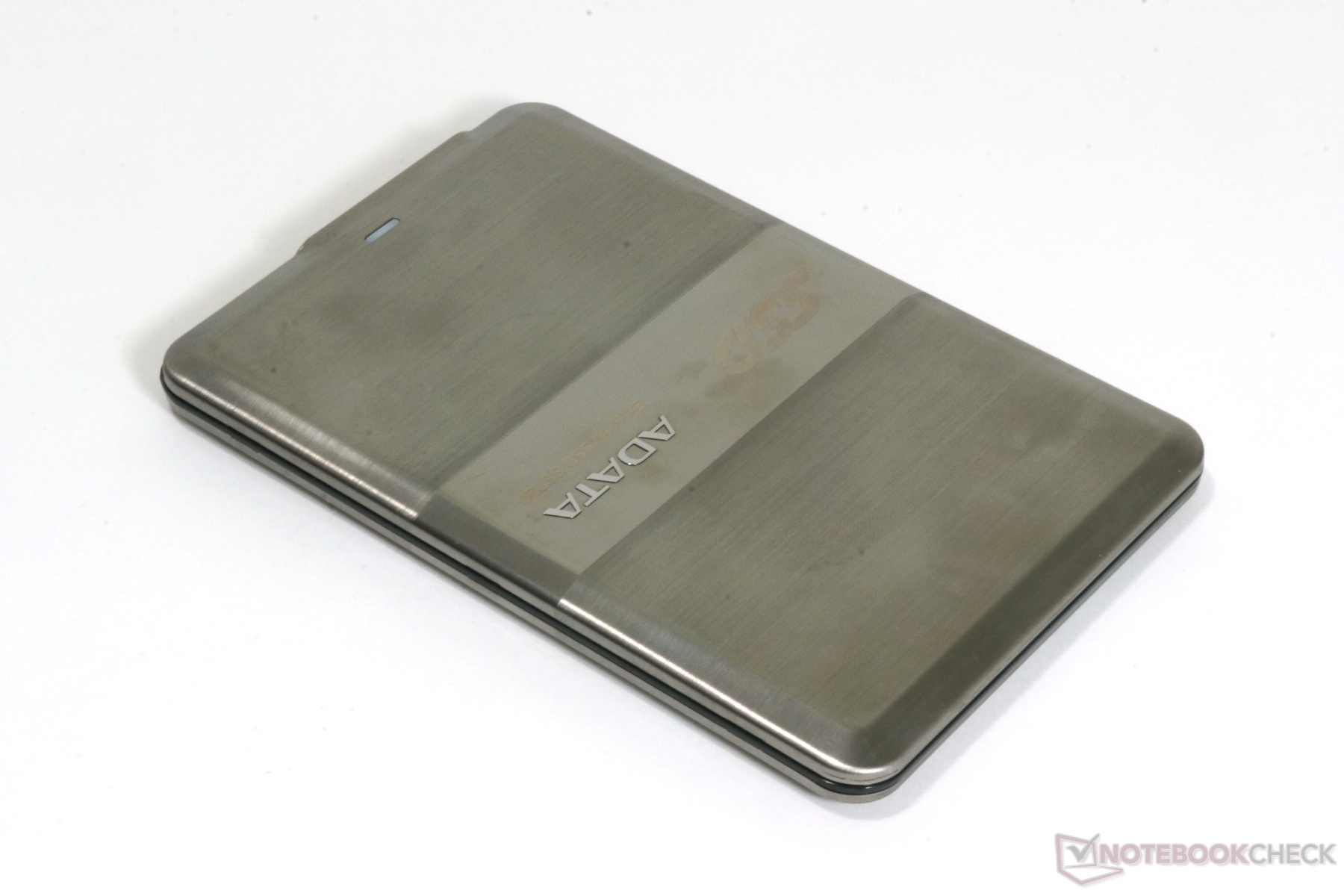 Die ADATA SE720 ist eine relativ günstige externe SSD mit 128 GB im formschönen Metallgehäuse. Das schlichte Äußere gefällt durch ein klares Design, die Oberfläche ist jedoch sehr anfällig für Fingerabdrücke und wird dadurch schnell unschön. Die mitgelieferte gefütterte Kunststofftasche ist dafür die Lösung. Die SSD kann beim kurzzeitigen Einsatz in der Tasche verbleiben und ist durch die Fütterung beim Transport noch zusätzlich geschützt. Für den längeren Einsatz empfehlen wir jedoch nicht den Betrieb in der Tasche, da die Hitzeentwicklung sich negativ auf die Lebensdauer auswirken könnte.