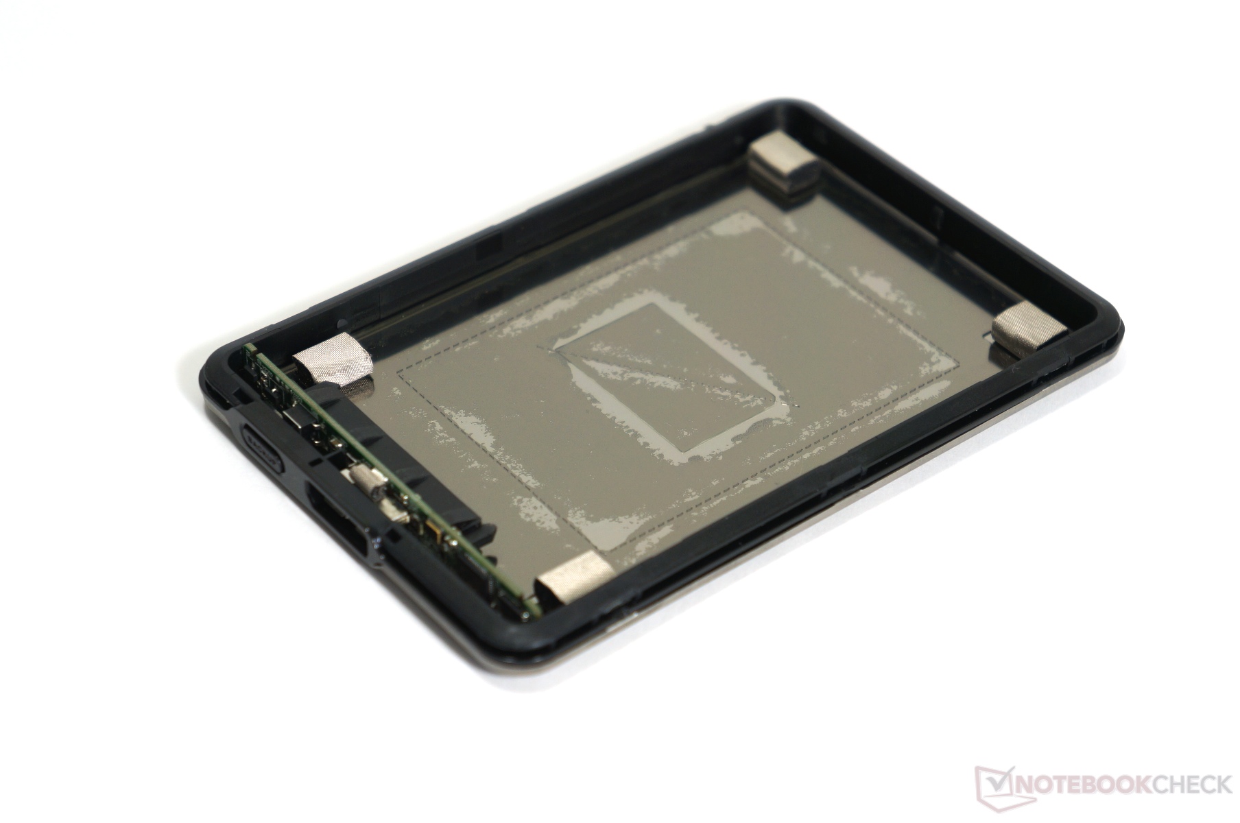 Die Stabilität des Gehäuses ist gut, und nur in der Mitte gibt es bei starkem Druck leicht nach. Zusammen mit der Tasche scheint die SSD jeglichen Transportaufgaben gut gerüstet zu sein.
