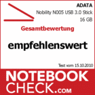 Test ADATA Nobility N005 16 GB USB 3.0 Stick