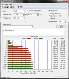 Typisch für den verwendeten SandForce Controller hängt die Schreib- und Leseleistung stark von der Komprimierbarkeit der Daten ab. Auf der positiven Seite bietet der Controller eine transparente Verschlüsselung der Daten (wie die Intel SSD 320).