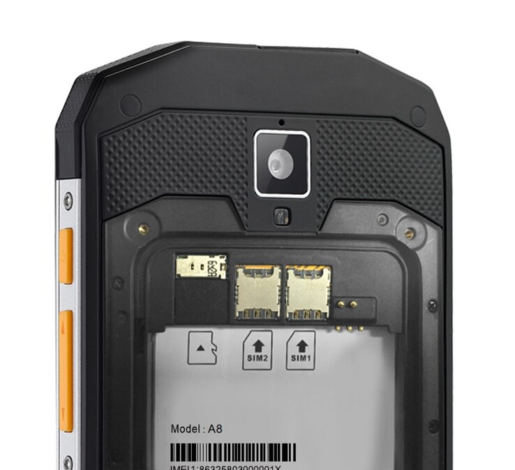 In puncto Speicherplatz ist das AGM A8 nicht nur als Outdoor-Smartphone, sondern auch für seine Preisklasse außergewöhnlich gut ausgestattet. Der interne Speicher misst 32 GB und kann bei Bedarf mittels microSD-Karte um weitere 32 GB aufgestockt werden. Unsere Referenzkarte mit 64 GB Kapazität funktionierte dennoch. Der Nachteil der robusten Bauweise liegt allerdings darin, dass sich der microSD-Slot im Inneren des AGM A8 befindet, d.h. der Akku mitsamt seiner zwei Abdeckungen muss entfernt werden, was wegen der besagten Schrauben länger dauert als üblich.