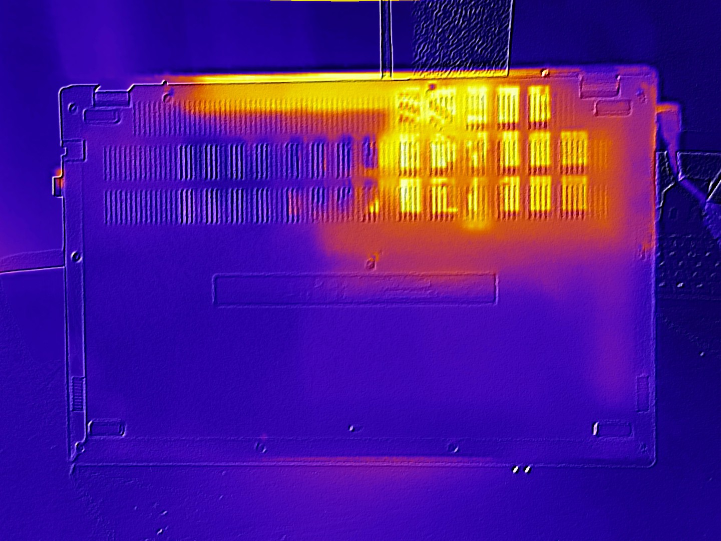 (±) Auf der Unterseite messen wir eine maximalen Wert von 45 °C (im Vergleich zum Durchschnitt von 39.2 °C).