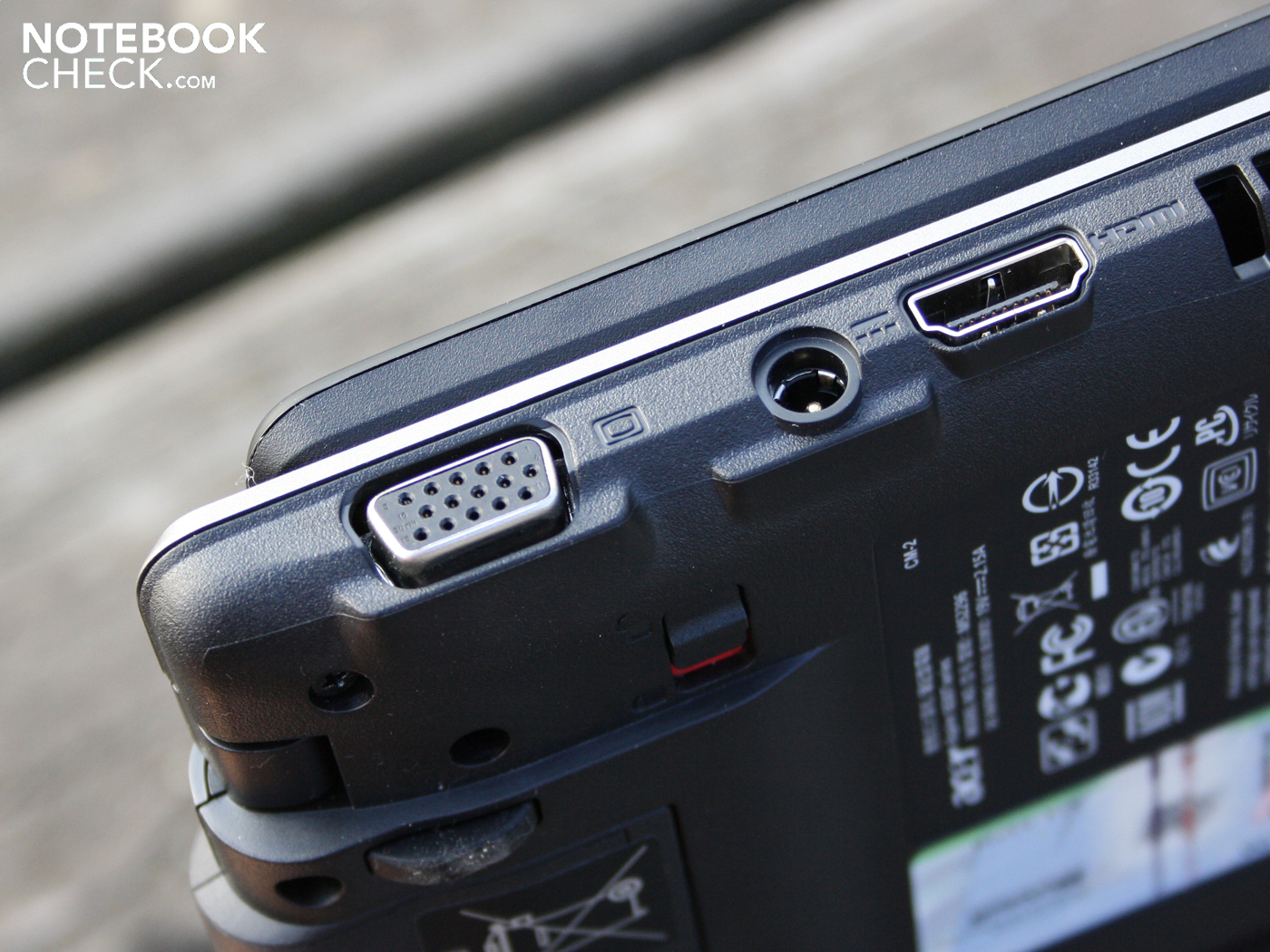 Das Timeline X 1830T ist, bis auf Details wie Bluetooth und SPDIF, ebenso ausgestattet, wie das Aspire One 752 Subnotebook. Neben den drei USB 2.0 Standard Ports stoßen wir auf HDMI und Bluetooth 2.1+EDR. An den HDMI- und den VGA-Port passen der Fernseher (Tonübertragung bei HDMI) bzw. ein externes TFT. Wem Musik nicht Einerlei ist, der wird sich über den optischen Audio-Ausgang SPDIF freuen. Über diese Verbindung ist eine verlustfreie Übertragung an eine Stereo-Heimanlage möglich. Weniger verlustfrei gibt sich die schwach auflösende 0.3 MP Webcam. Die Crystal Eye Kamera im Displayrahmen nimmt mit 640 x 480 Pixeln auf.