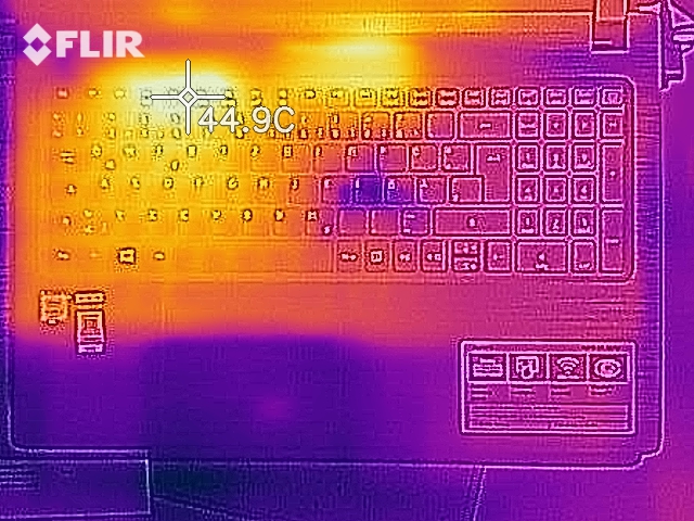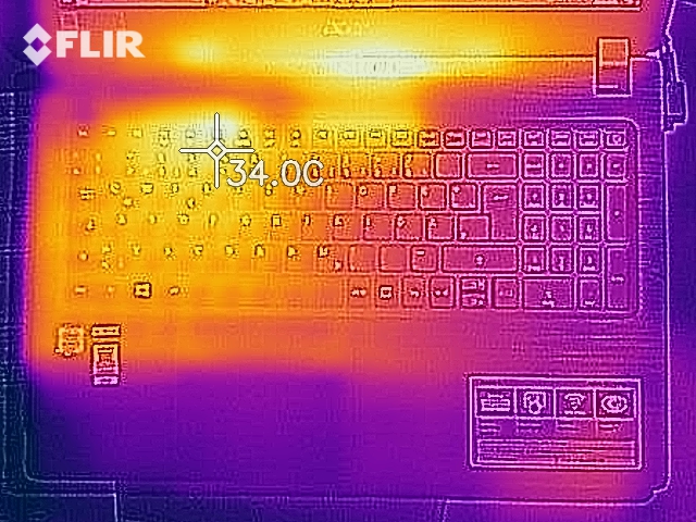 (+) Die Handballen und der Touchpad-Bereich sind mit gemessenen 26.2 °C kühler als die typische Hauttemperatur und fühlen sich dadurch kühl an.