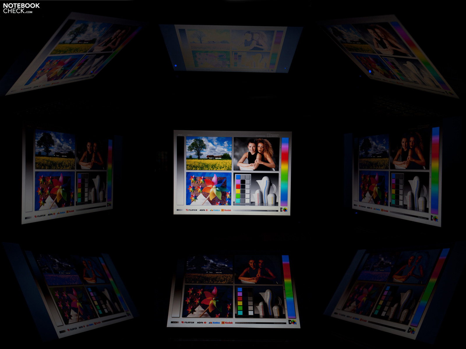 Der Außengebrauch und die Blickwinkelstabilität lassen sich in diesem Fall gut zusammenfassen, da sie dem üblichen Verhalten einer günstigen Lösung entsprechen. Schon bei indirekter Lichteinstrahlung treten sichtbare Spiegelungen auf, die von der Helligkeit nur dürftig aufgefangen werden können. Andererseits erzeugen vertikale Bewegungen des Bildschirms oder eine vergleichbare Veränderung der Sitzposition ein rasches Invertieren beziehungsweise Aufblenden. Die horizontale Bildwiedergabe ist im Vergleich weitestgehend stabil.