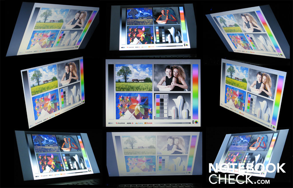 Die gebotene Blickwinkelstabilität ist ausreichend. Bei der horizontalen Betrachtung ist der Bildschirminhalt auch bei flachen Blinkwinkeln noch gut erkennbar. Beim vertikalen Betrachten wird aus dem normalen Bildschirminhalt schnell ein invert dargestelltes Bild. Sitzt man direkt vor dem Notebook, ist der Inhalt des Bildschirmes auch für gut drei Betrachter ausreichend stabil. Diese sollten jedoch alle auf der gleichen Höhe sitzen.