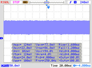 Das Display flackert mit 250 Hz (im schlimmsten Fall, eventuell durch Pulsweitenmodulation PWM) bei einer eingestellten Helligkeit von 90 % und darunter. Darüber sollte es zu keinem Flackern kommen. Die Frequenz von 250 Hz ist relativ gering und daher sollte es bei sensiblen Personen zu Problemen wie Flackern oder Augenbeschwerden führen. Im Vergleich: 53 % aller getesteten Geräte nutzten kein PWM um die Helligkeit zu reduzieren. Wenn PWM eingesetzt wurde, dann bei einer Frequenz von durchschnittlich 8084 (Minimum 5, Maximum 343500) Hz. | |||