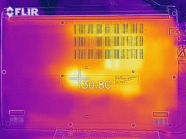(±) Auf der Unterseite messen wir eine maximalen Wert von 40 °C (im Vergleich zum Durchschnitt von 39.1 °C).