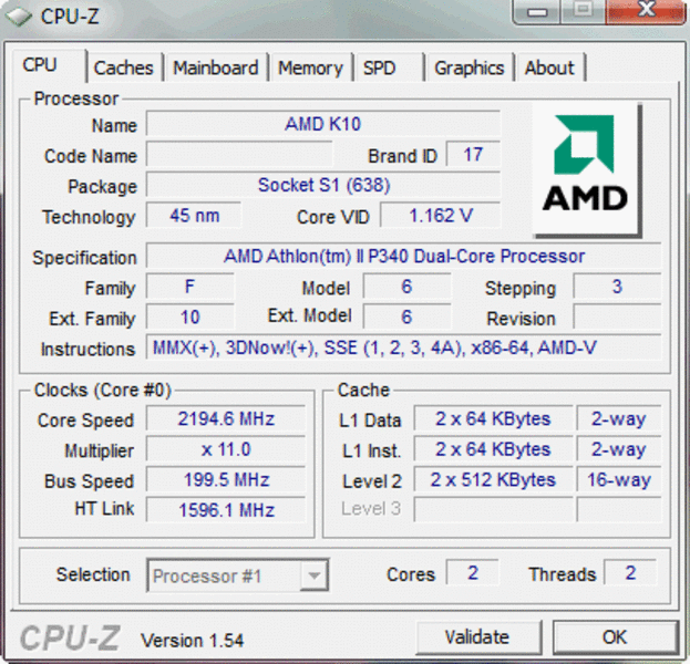Acer rüstet seinen 15.6-Zoller mit dem AMD-Doppelkerner Athlon II P340 (2 x 2.2 GHz) aus. Die CPU besitzt lediglich einen L2-Cache von 1.024 KB. Der Prozessor mit einem TDP von 25 Watt sitzt auf dem AMD Chipsatz RS880M und wird von 4.096 MB DDR3 Arbeitsspeicher unterstützt. Der Dual-Channel Speicherkontroller (DDR3-1066) ist im Prozessor integriert.