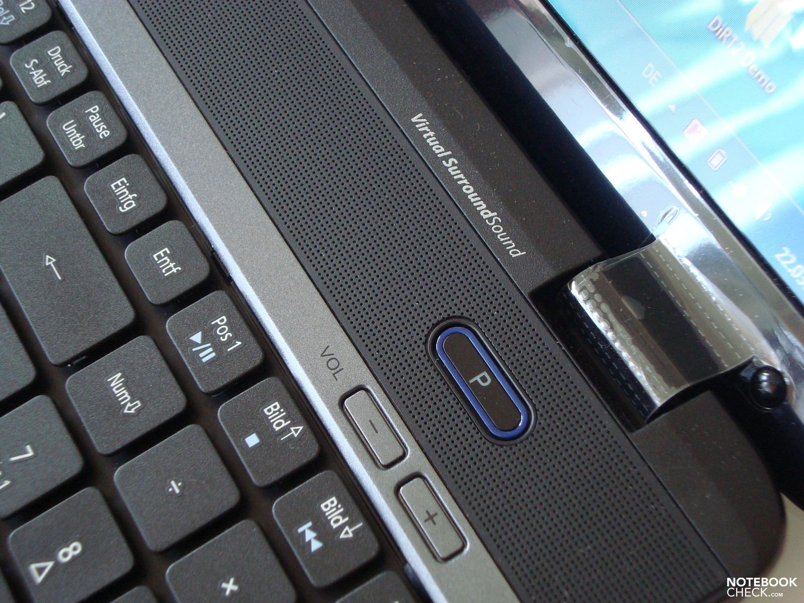 Weiters befindet sich auf der rechten Seite über der Tastatur ein länglicher Button mit der Aufschrift „P“. Dieser Button kann beliebig belegt werden. So kann man z.B. oft benötigte Programme darauf legen und diese dann per Knopfdruck starten. Gleich darunter befinden sich zwei weitere Knöpfe zur Steuerung des Volume Outputs.