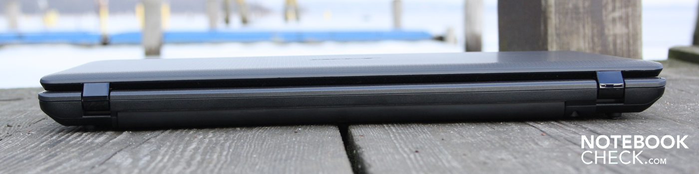Die Nachteile des 5742G liegen bei der Outdoor-Anwendung, den Anschlüssen und den Eingabegeräten. Die HD+ Anzeige ist zwar durchschnittlich hell, aber starke Reflexionen des Glare-Type sorgen für Verstimmung. Bei den Ports werden gerade Spieler eSATA, USB 3.0 und ExpressCard vermissen. Die Tastatur kann mit einer guten Büroeingabe bei Weitem nicht mithalten, dafür ist sie zu schwammig. Das Adjektiv gilt ebenso für die Base Unit, die sich knarrend mit etwas Kraft verwinden lässt. Nicht zu überhören ist zudem der schlechte Klang dank Mono-Lautsprecher.