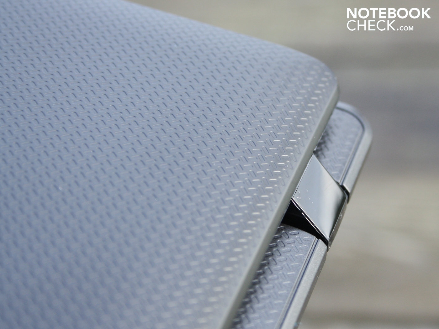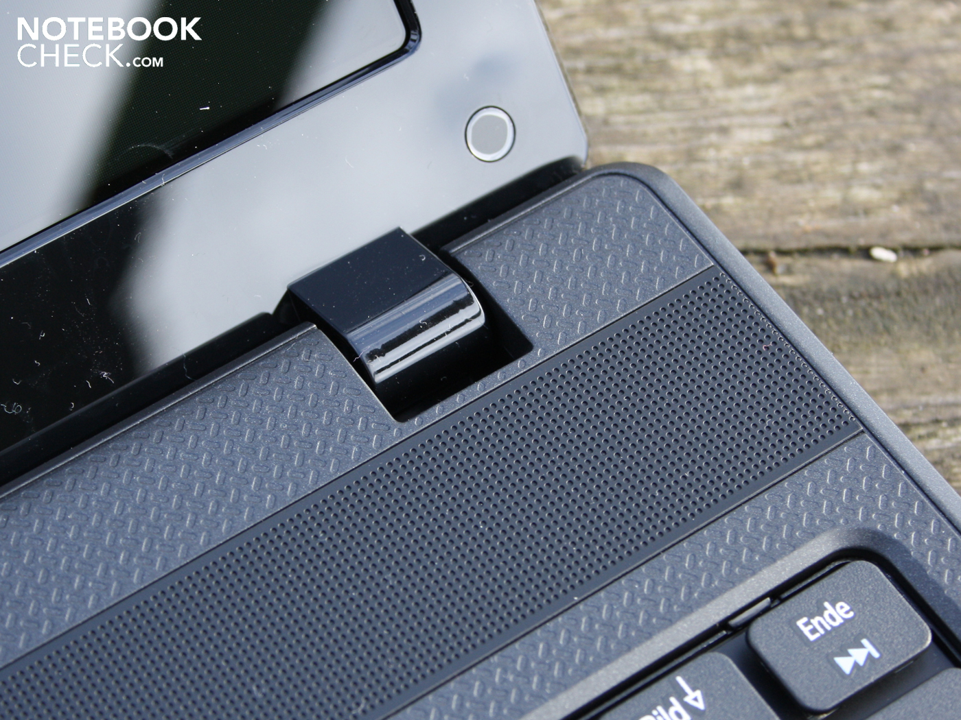 Die Gelenke halten den Deckel sicher in Position, es gibt kaum ein Nachwippen. Sie sind stramm festgezurrt, weshalb wir zwei Hände zum Öffnen benötigen. Die Scharniere selbst sitzen sehr fest in ihrer Arretierung am Chassis. Der maximale Klappwinkel ist für den Betrieb auf dem Schoß mehr als ausreichend. Der Winkel beträgt weite 160 Grad.
