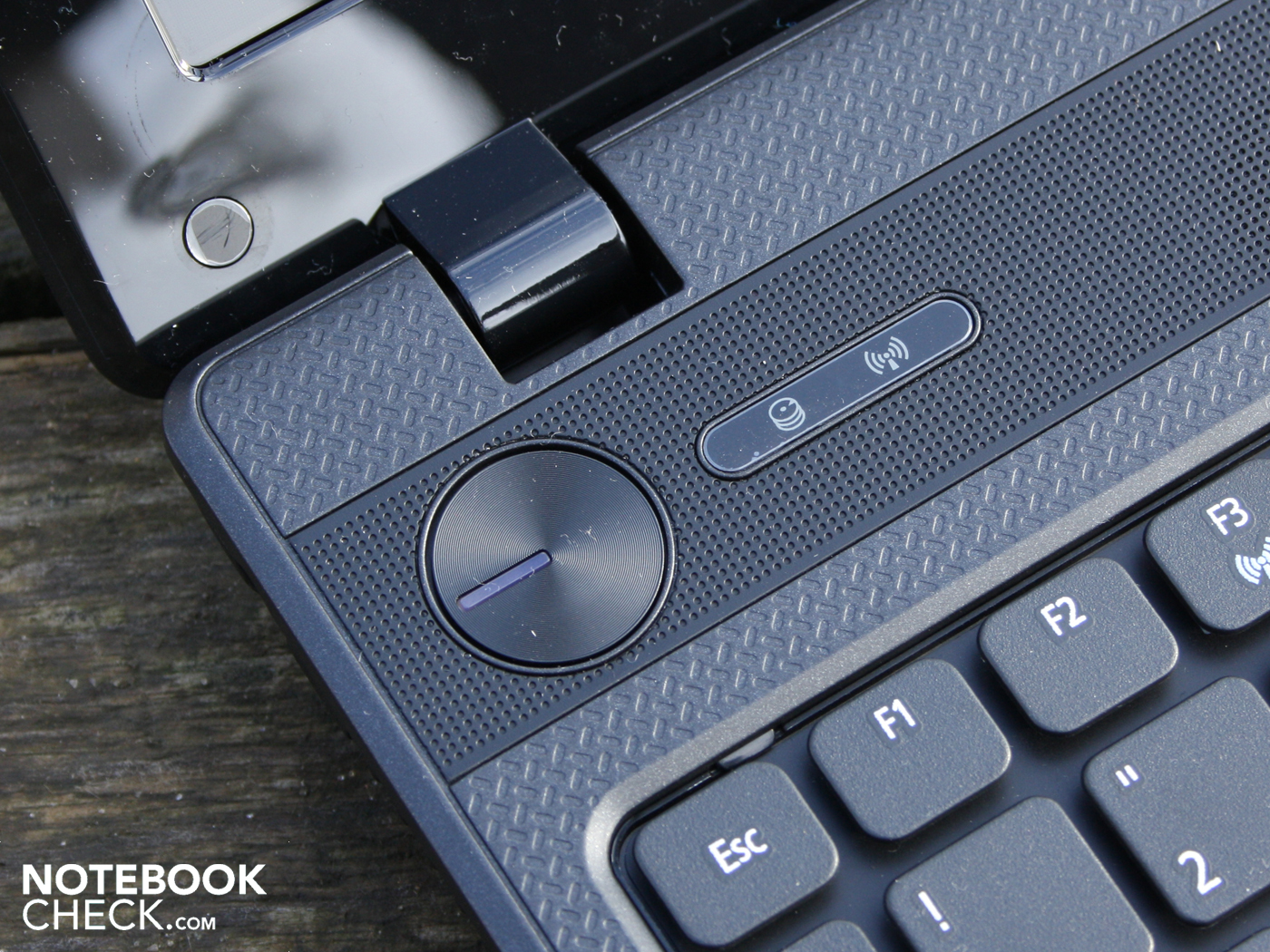 Jetzt haben wir gefunden, woran der Hersteller gespart hat. Statt der üblichen Stereo-Lautsprecher befindet sich nur ein Mono-Speaker unter der fein gelochten Kunststoff-Leiste über der Tastatur. Es hatte uns schon gewundert, warum nicht die üblichen Dolby-Home-Theater Beschriftungen das Gehäuse verzieren. Der Single-Speaker kann natürlich bei weitem nicht die Erwartungen an den Klang eines Multimedia-Notebooks erfüllen. Der mittenlastige, verwaschene Sound bietet keine Differenzierung oder Räumlichkeit. Die meisten Soundverbesserungen in den Audio-Eigenschaften (z. B. Virtuelles Surround) zeigen mit dem Mono-Speaker keine Wirkung.