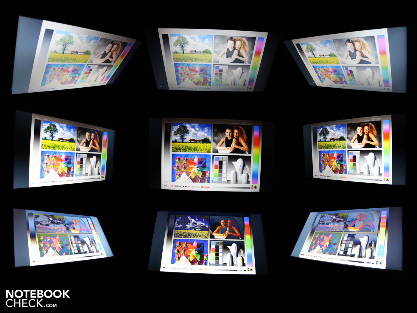 Horizontal können wir bis zu 40 Grad von der Frontalen abweichen, dann erst dunkelt die Anzeige ab und Farben verfälschen. Vertikal beginnt der Effekt schon bei geringster Abweichung von 15 Grad. Das Bild dunkelt dann deutlich ab und die Farben invertieren. Heftigste Einschränkungen erleben wir beim seitlichen Blick von Oben oder Unten. Wenn sich mehrere Personen einen Film oder Fotos ansehen, so hat der eine oder andere Schwierigkeiten, ein gutes Bild zu erkennen.