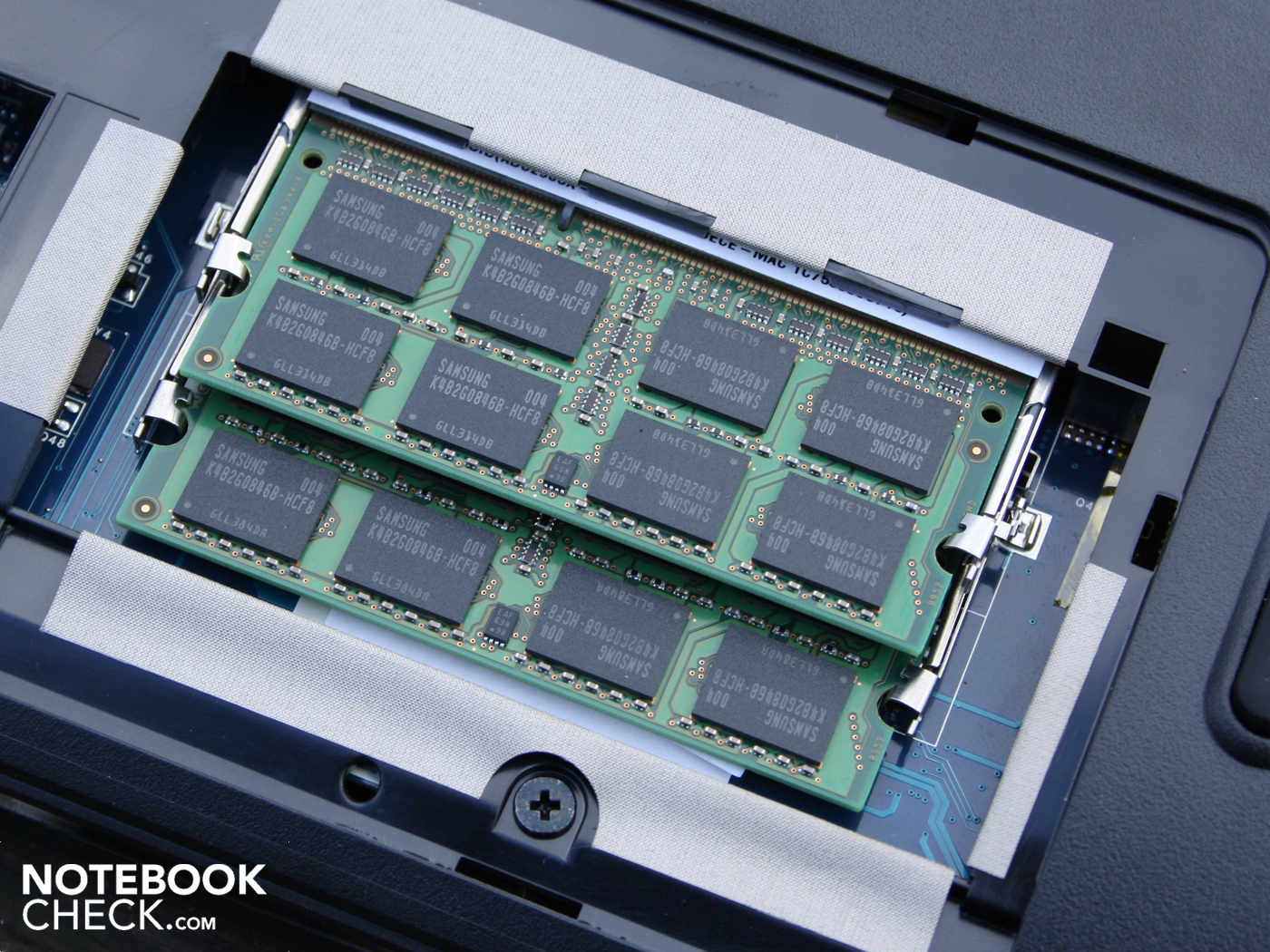 Das Gehäuse ist ausreichend stabil und vermittelt durch saubere Spaltmaße einen langlebigen Eindruck. Mit beiden Händen können wir das Chassis allerdings ein Stückchen verwinden. Die Handballenauflage kann rechts geringfügig eingedrückt werden. Das Tastenbett gibt jedoch schon auf leichten Druck hin deutlich nach. Die Bodenplatte lässt sich punktuell mit dem Finger eindellen, speziell an den Luftgittern. Die große Öffnung an der Unterseite bietet Aufrüst-Optionen: Es besteht Zugang zu Festplatte, Arbeitsspeicher und WLAN-Modul (mini PCIe).