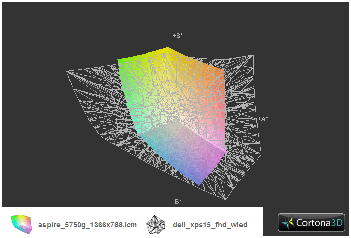 Dass es sich beim verbauten Display lediglich um Durchschnittshardware handelt, bestätigt auch der darstellbare Farbraum des eingesetzten Panels. Adobe RGB als auch sRGB bleiben unerreicht, im Vergleich liegt das Display auf dem Niveau günstiger Notebooks wie etwa dem MSI CX620. Für den Otto-Normalverbraucher spielt dies nicht wirklich eine Rolle, Enthusiasten hinsichtlich Grafik- und Bildbearbeitung dürften hier allerdings einen Ausschlussgrund vorfinden.
