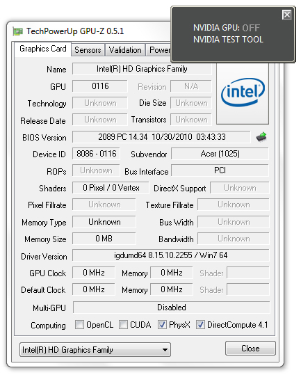 Bei der Grafikkarte setzt Acer auf einen Vertreter der aktuellen Generation von Nvidia, die GT540M. Ausgestattet mit DirectX 11 Support und zahlreichen Features stellt sie eine nachvollziehbare Wahl für ein günstiges Allroundgerät dar. Selbst aktuelle Games sollte die GPU bei attraktiven Details flüssig darstellen können. Dank Nvidia Optimus wird außerdem auch die in der CPU integrierte Intel HD Graphics 3000 genutzt. Optimus wechselt dabei vollautomatisch ohne vom User wahrgenommen zu werden auf die jeweils am besten angepasste GPU, sprich die integrierte Grafiklösung bei geringer Last und die GT 540M sofern Grafikpower von Nöten ist. Dies reduziert den Stromverbrauch des Notebooks als auch die Emissionen im Office-Betrieb.