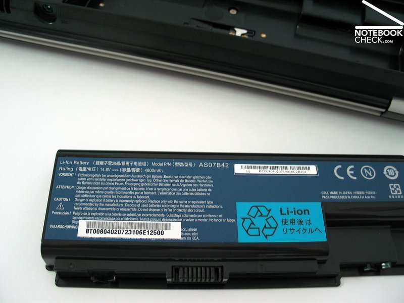 Das Acer Aspire 5920G verfügt über einen 4800mAh Akku. Damit konnte das Gerät - zu unserer Überraschung - durchwegs gute Laufzeiten erreichen. Die ermittelten netzunabhängigen Zeiten liegen im Bereich zwischen 160 Minuten unter Last bis hin zu mehr als 4 Stunden mit optimierten Energiesparoptionen.